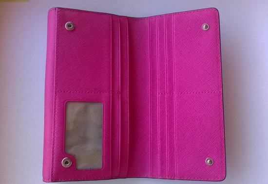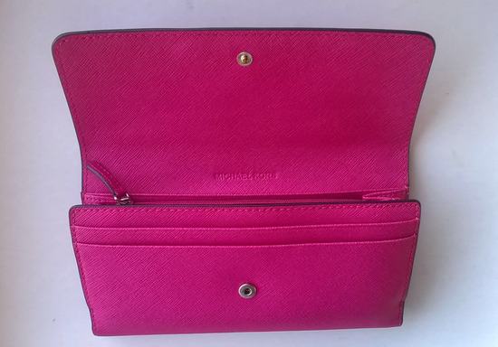 Original Michael Kors novčanik, saffiano koža, genijalna pink boja, srebrna slova, care instruction knjižica - dimenzije 19/10/3.5 cm. Nenošen - kako je kupljen tako ga prodajem. Budući da ovi novčanici nemaju dustbagove (nisu nikad ni imali jer je basic linija) poklanjam jedan svoj dizajnerski! Tko prvi njemu ide - nema rezervacija, oglas će biti aktivan do 15.09. Plaćen oko 1.185,00 kn (prije 2 mj). Cijena je fiksna i ne uključuje poštarinu jer sam snižavala već 3 puta i sad bi ga se zbilja rado riješila :)