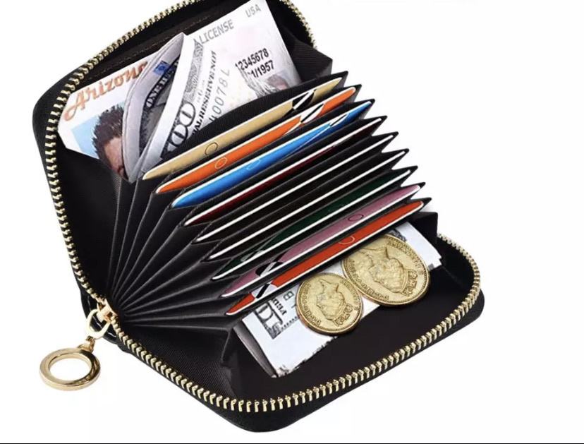 Sa zip zatvaračem. Sadrži 9 utora za kartice i 2 mala džepa za novce ili kovanice.