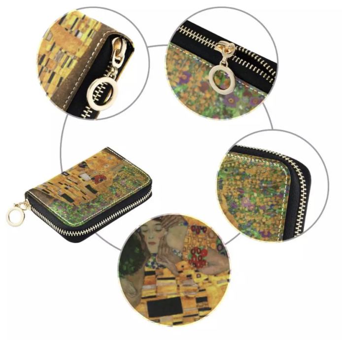 Predivni mali novčanik - držač kreditnih kartica (osobne iskaznice, zdravstvene iskaznice, vizit kartice Itd.) i kovanica sa motivom Gustav Klimt - Poljubac