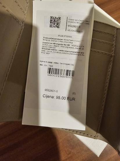 Potpuno novi kožni novčanik brenda Mona, bež boje, plaćen 95 eura.