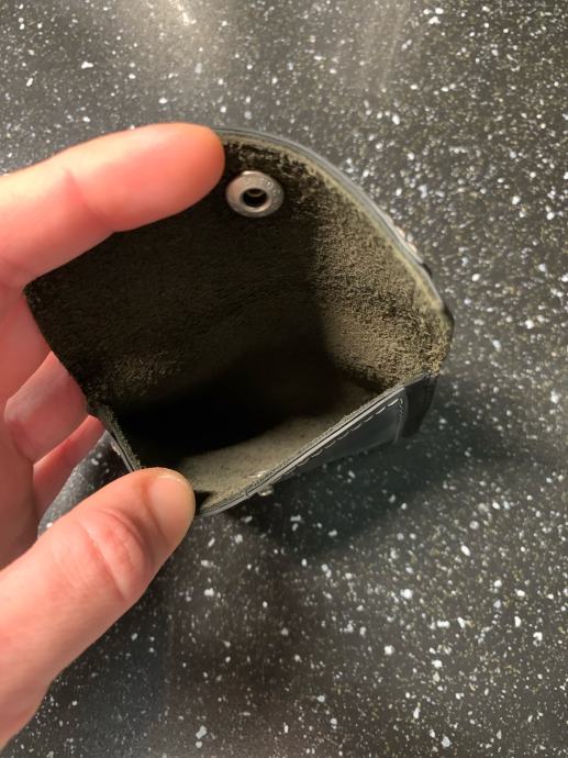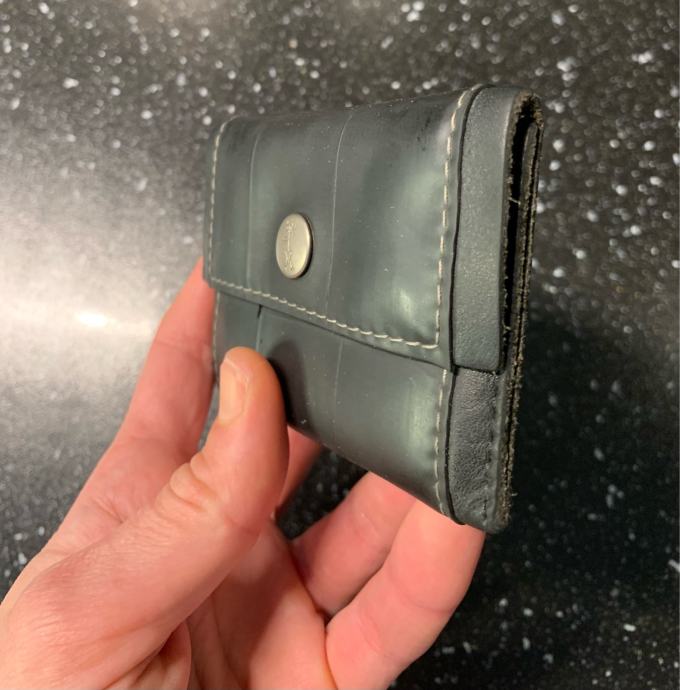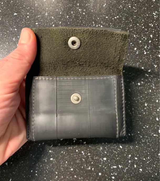 Napravljena je od gume i možete ju slobodno i prati. Nema nikakvih tragova korištenja, ja sam ju kupila u nekom sportskom dućanu za ko zna kakvu namjenu i plaćena je oko 200 kn, zabrijala sam da ću je nosit za kovanice, ali ja rijetko plaćam išta u gotovini, pa je na kraju ne koristim.