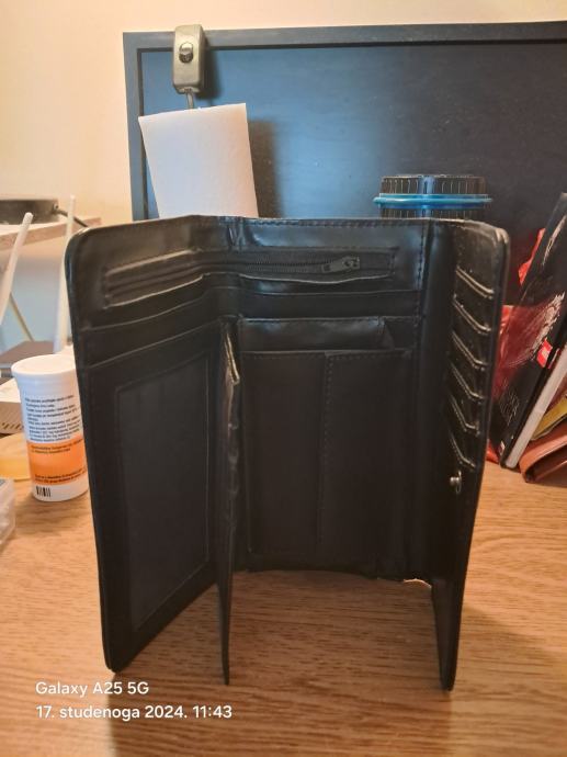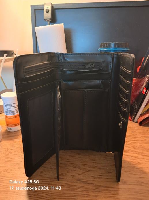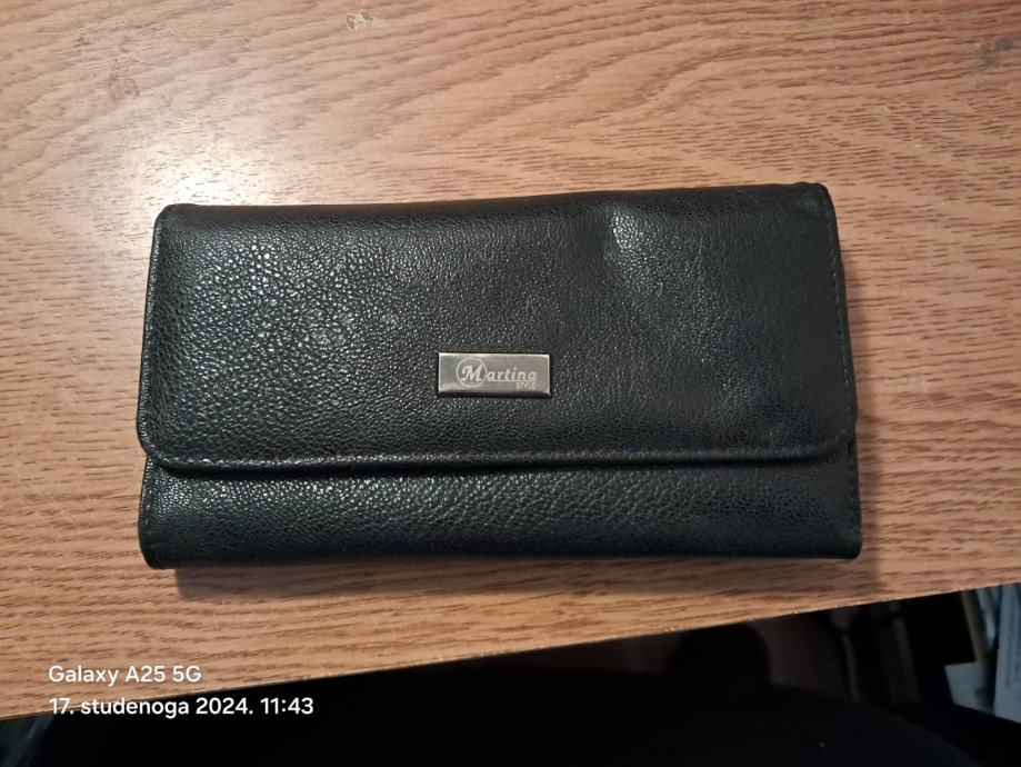 Ženski novčanik crni veći nije korišten. Novi ali bez etikete. Moguće slanje sa poštom na teret kupca. Cijena je 10 eura i fiksna je
