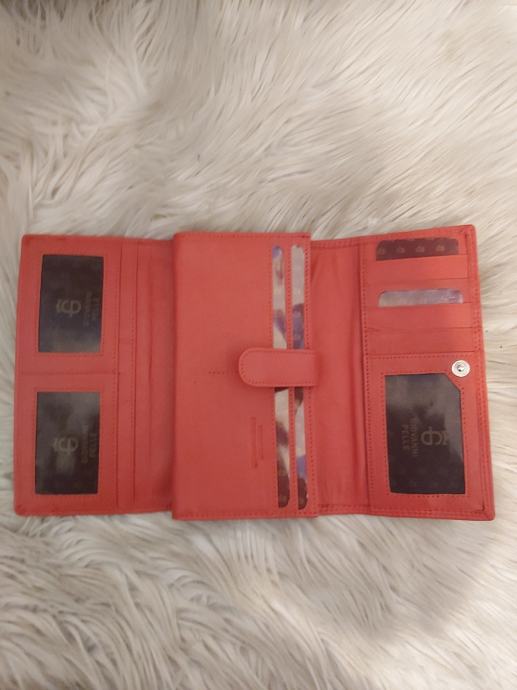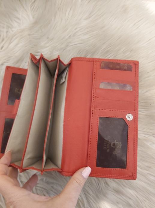 Novčanik sadrži 15 džepiča za kartice,3 pretinac za novčanice,1 pretinac za dokumente,džep za kovanice sa vanjske strane.