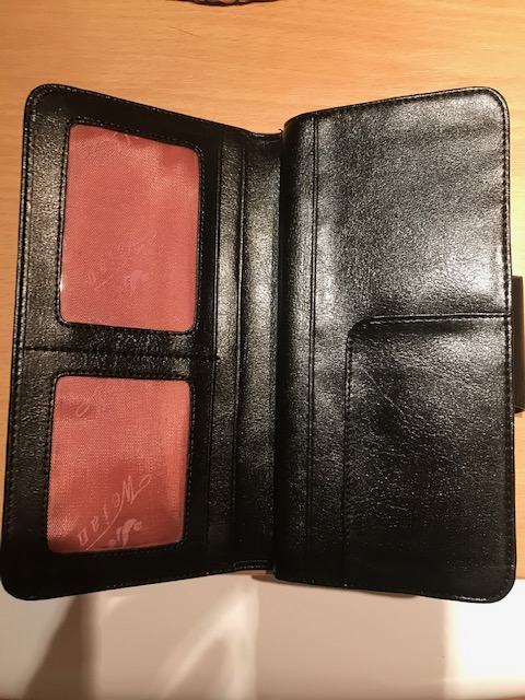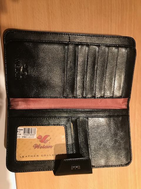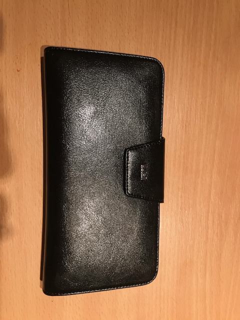 Ženski novčanik kožni, crne boje. Zapakiran, nekorišten.