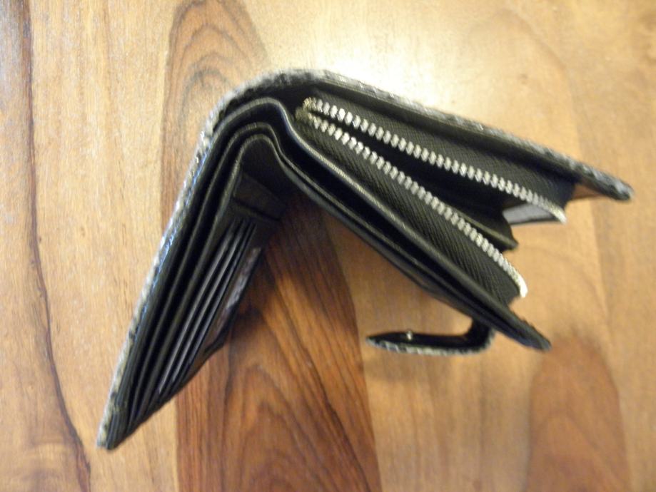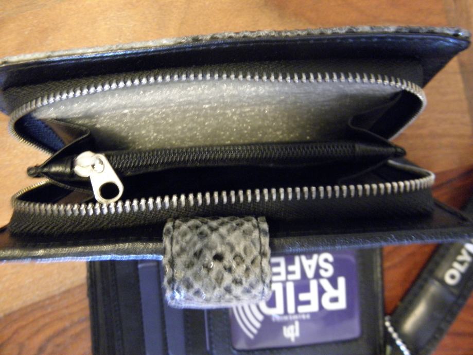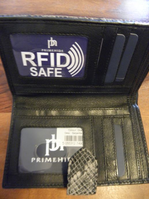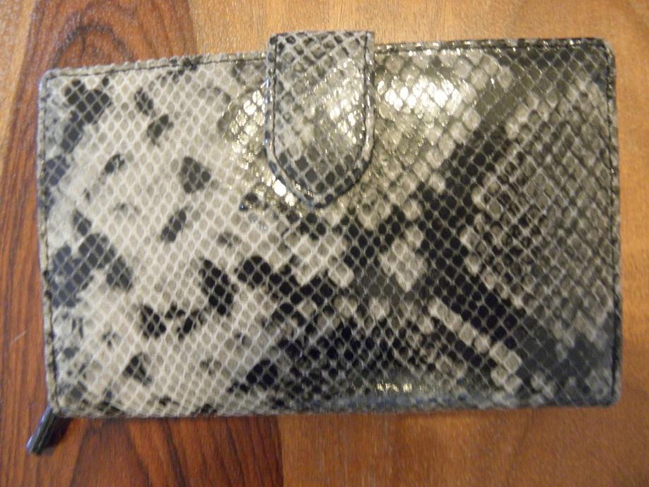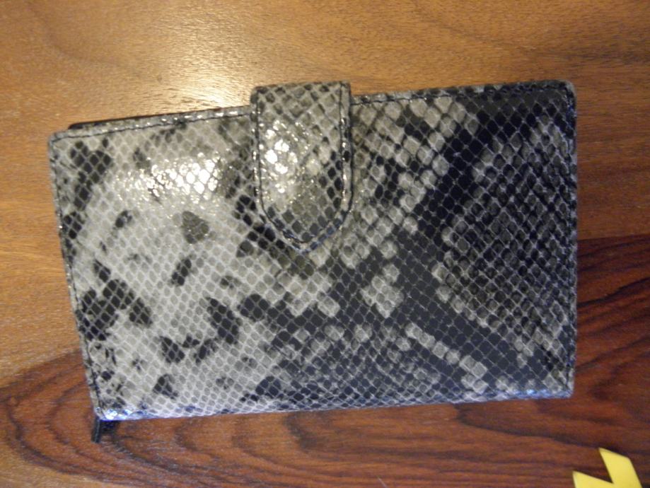 Novčanik je potpuno nov, zapakiran, imitacija zmijske kože i formata 9x15cm.