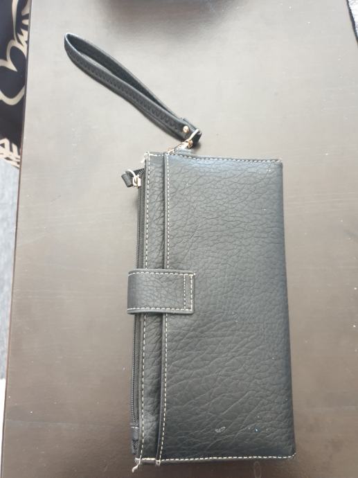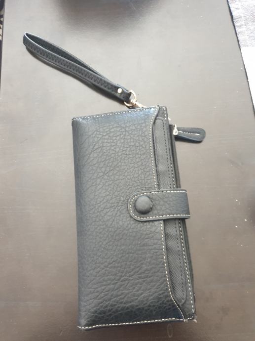 Ženski novčanik, torbica, crne boje, više pretinaca,