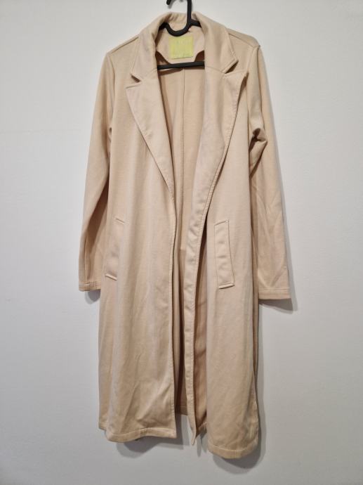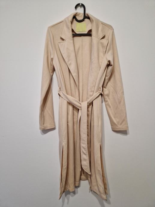 Novi beš kardigan/vesta, prekrasno stoji, dugačka je i sa džepovima, oko struka se veže, S veličina.