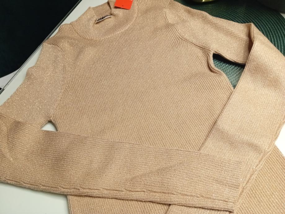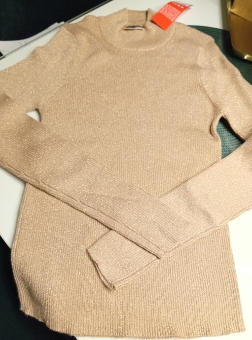 BEŽ PULOVER S ZLATNIM NITIMA vel M i vel. L - NOVO