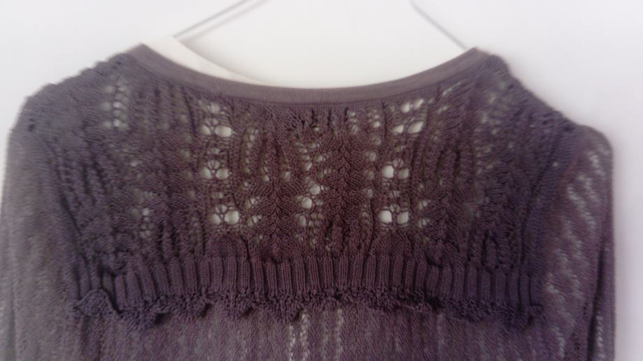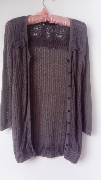 Boho romantična rupičasta vesta Mango, predivna ljubičaste boje lavande, nažalost deklaraciju sam odrezala jer je bila predugačka ali jako ugodan sastav, veličina 36/38