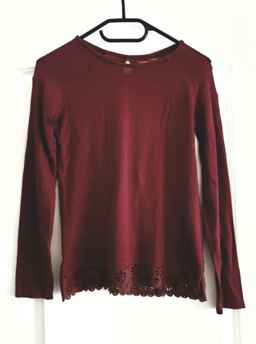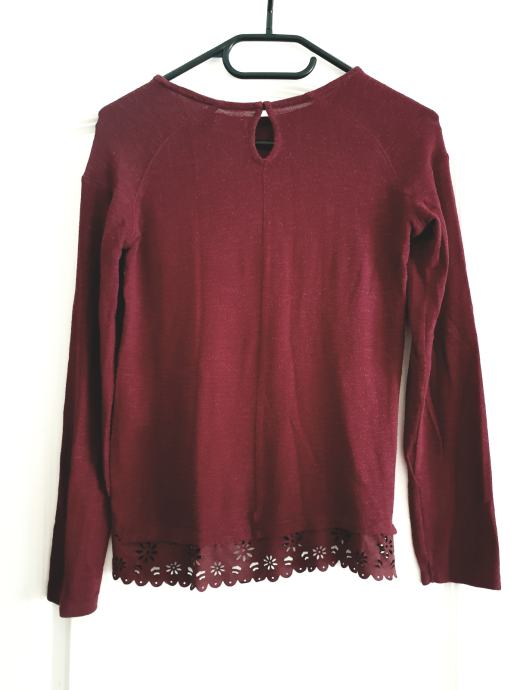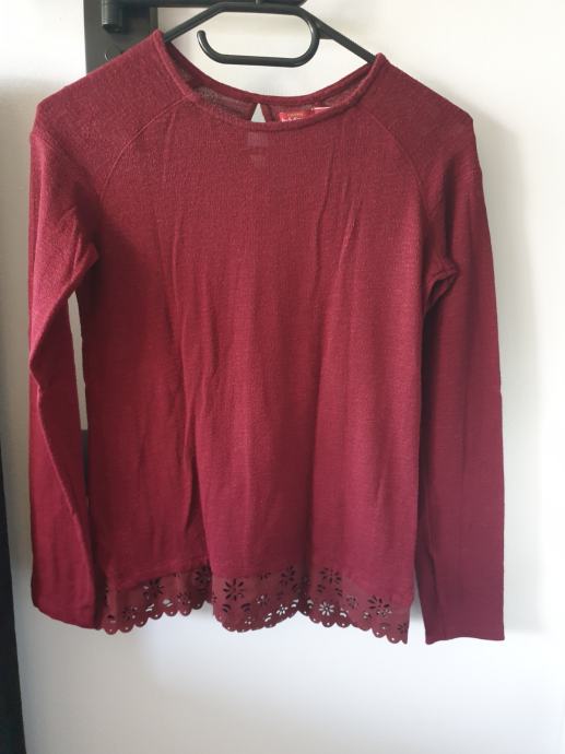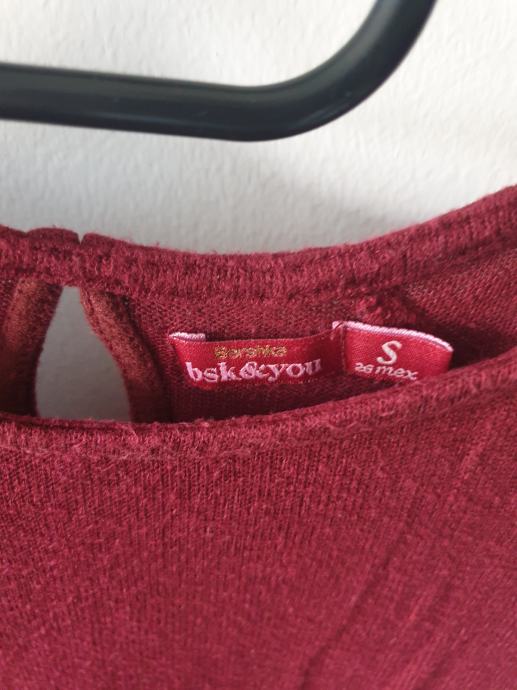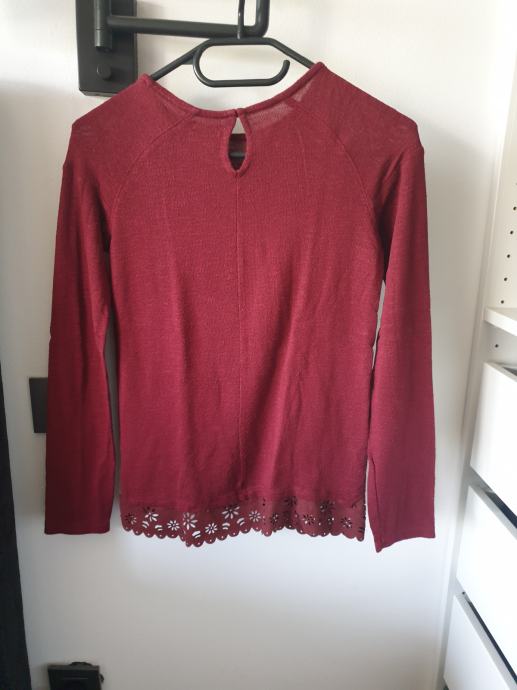 Crvena lagana vesta S, ima rub sa cvjetovima.
