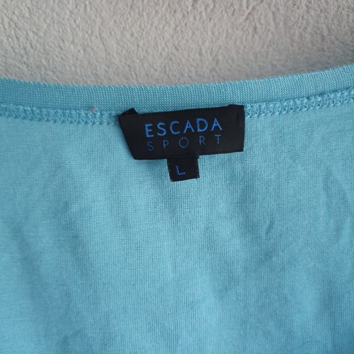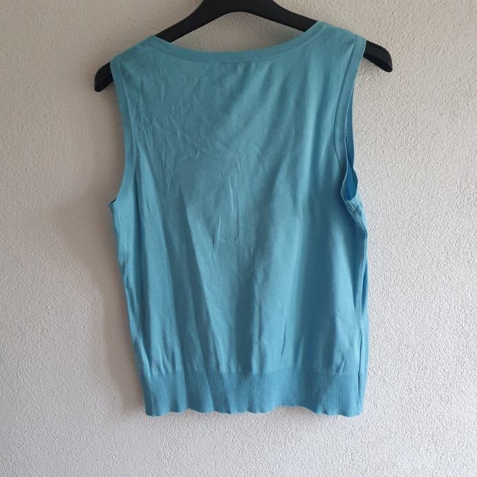 Prekrasna Escada tirkizna vesta L. Mjere su prsa 46 cm, dužina 56 cm. Etiketu sam odrezala ali, sastav je jako mekan.