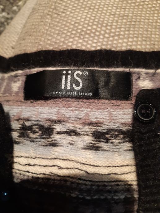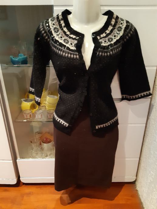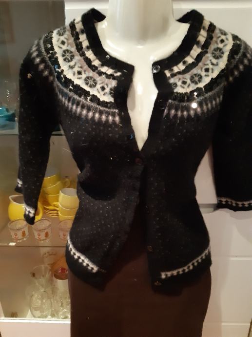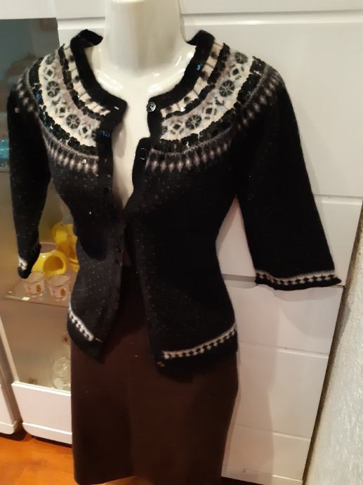 IIS crna vunena vestica s perlicama, 3 četvrt rukava, vel. M.širina prsa, prednja strana: 42 cm, duzina: 55 cm, rukav: 38 cm. Sastav: 70% vuna, 10% angora, 20% najlon.