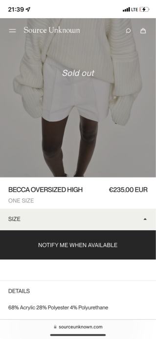 Original Source Unknown dzemper bijele boje, umiverzalna velicina/one size, na stranici sold out/iz kolekcije koja vise nije dostupna, ne radim povrat