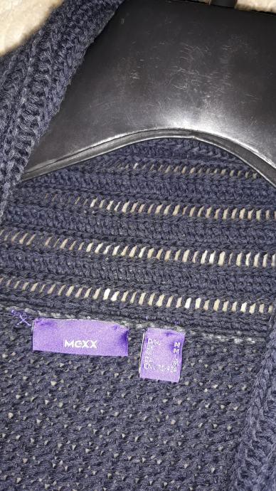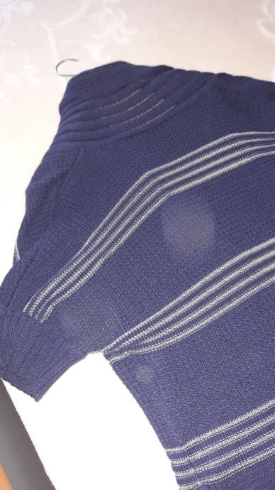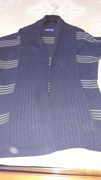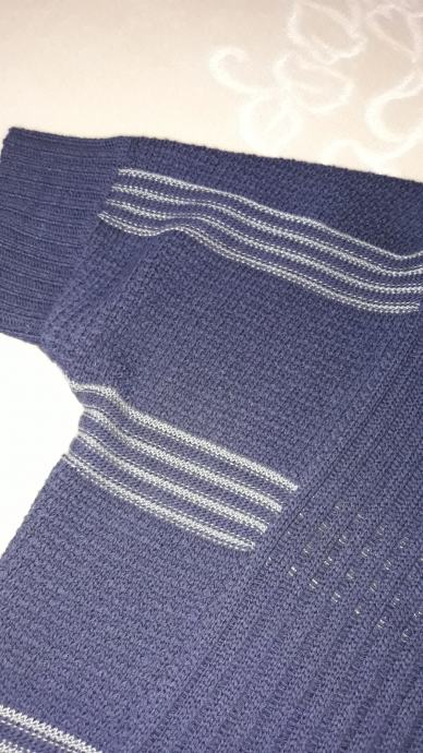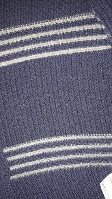 Tamnoplavo pletivo s sivim detaljima,s rukaviči.a i šal kragnom