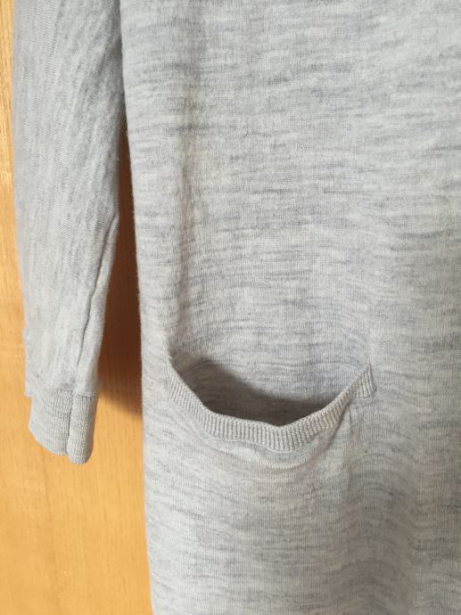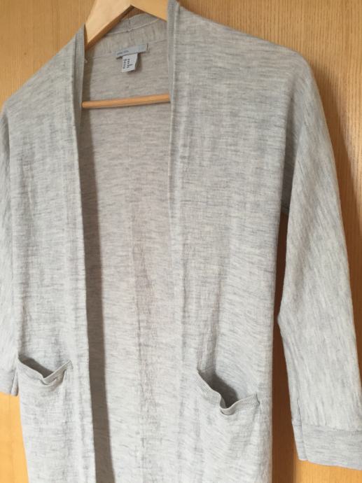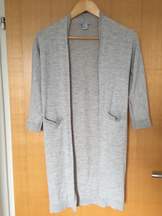 Predivan dugi kardigan bijelo-sive boje, vrlo topao i ugodan. Veličina XS / 34, meni nažalost ne odgovara, zato prodajem. Ima 3/4 rukave, dva mala džepa s prednje strane, baš je divan. Skupo plaćen, merino vuna. Bez ikakvih oštećenja, kao nov. Poštarina nije uključena. Moguća primopredaja u Zagrebu.