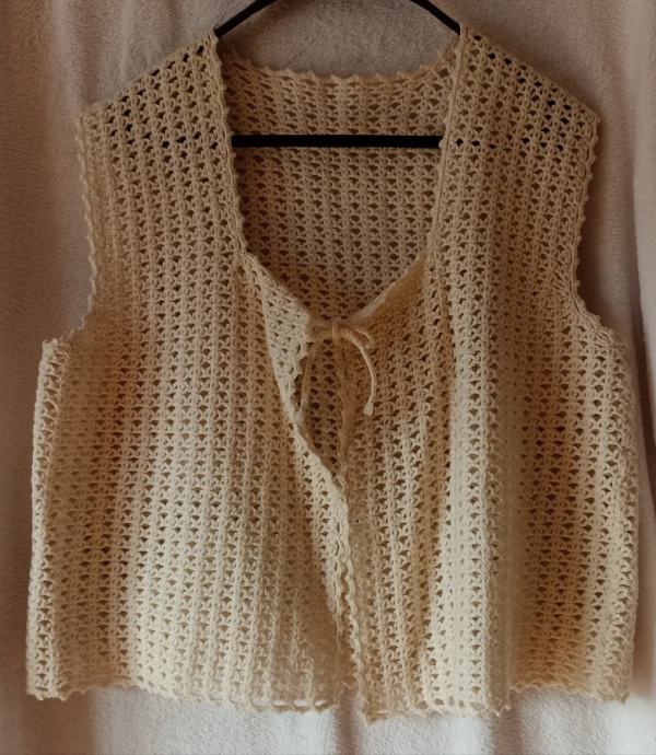 NOVI HEKLANI PRSLUK 42 XL BEZ RUKAVA RUČNI RAD PLETENO