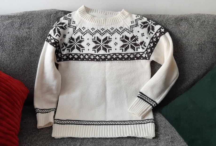 Vuneni pulover s crnom šarom.