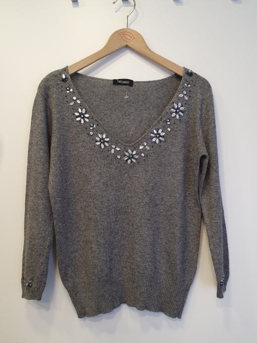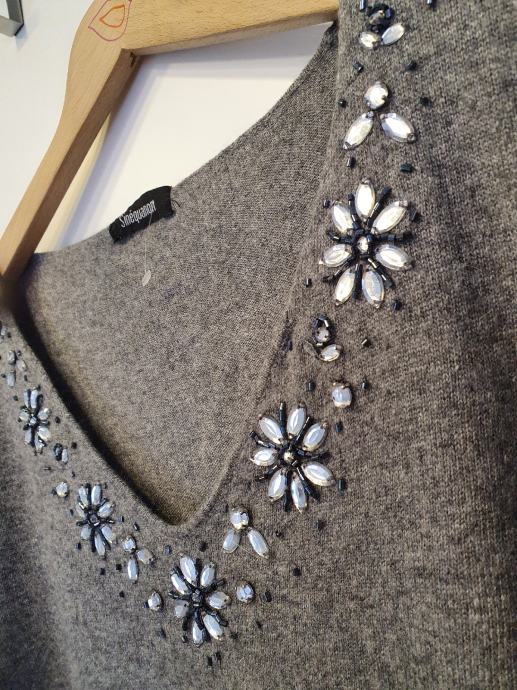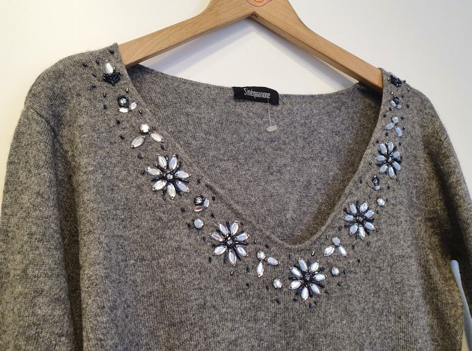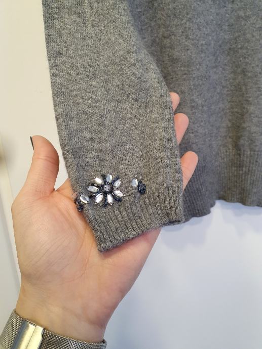 Nova, kašmirasto mekana, tanja nije tip đempera već finije veste, elastična, ima u sastavu i kašmira. Rukavi joj nisu skroz dugi.