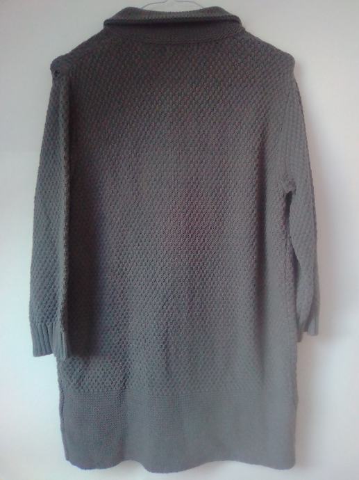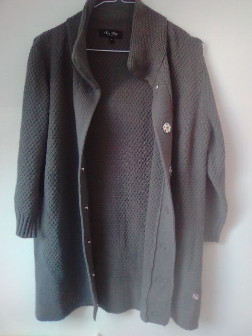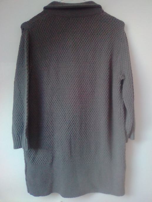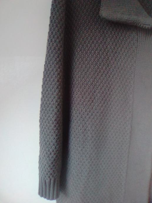 Sivi kardigan vesta na kopčanje 38 NOVO, kompaktna, fino tkanje, u prijelaznim razdobljima jesen/proljeća može poslužiti kao jakna, duljina 75cm, širina od pazuha do pazuha 52cm.