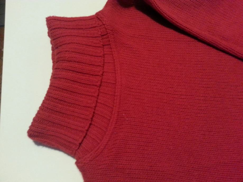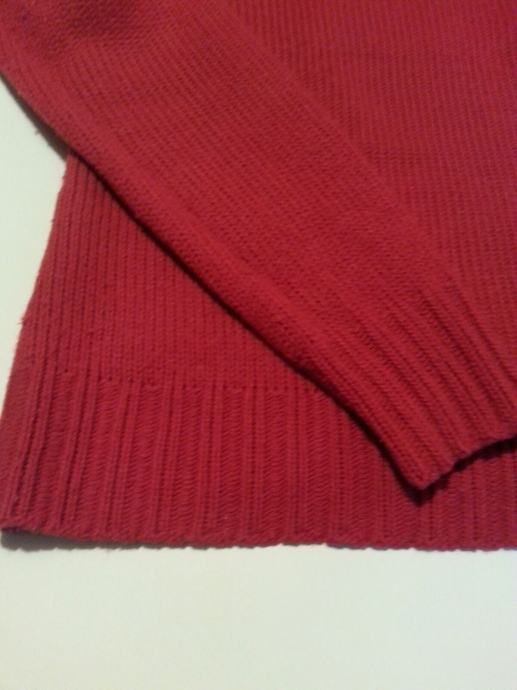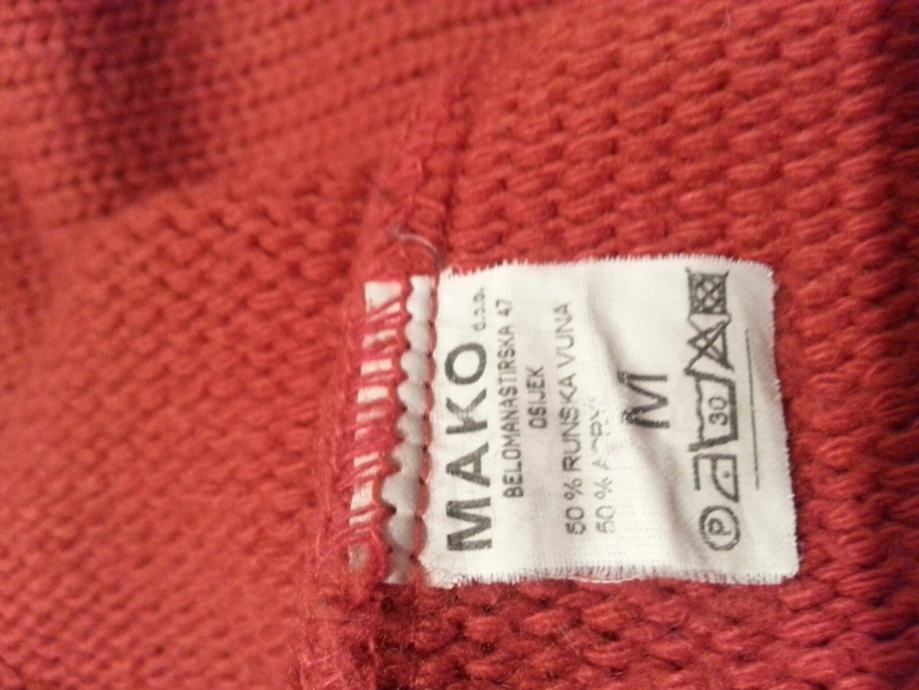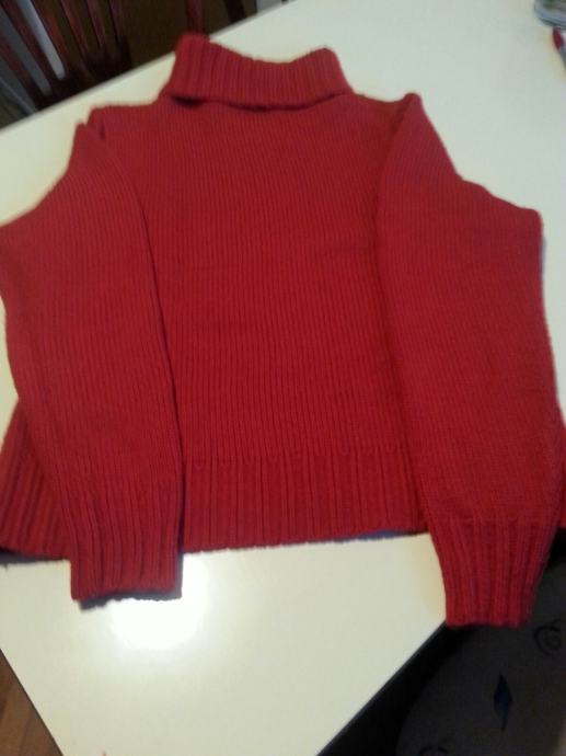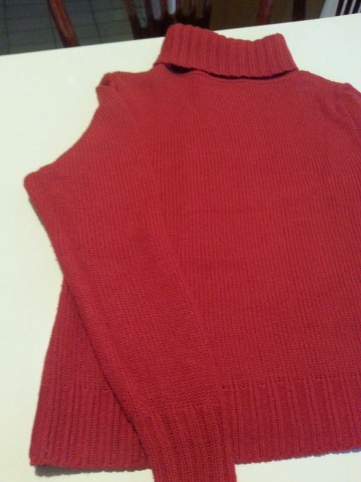 Prodajem izrazito topao, deblji pleteni pulover, lijepe ciglasto crvene boje veličine M. Uzdignuti okovratnik ne stoji usko uz vrat i ugodan je za nošenje.