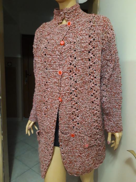 Ručno heklana, topla vesta, vuna, poliamid, poliakril.