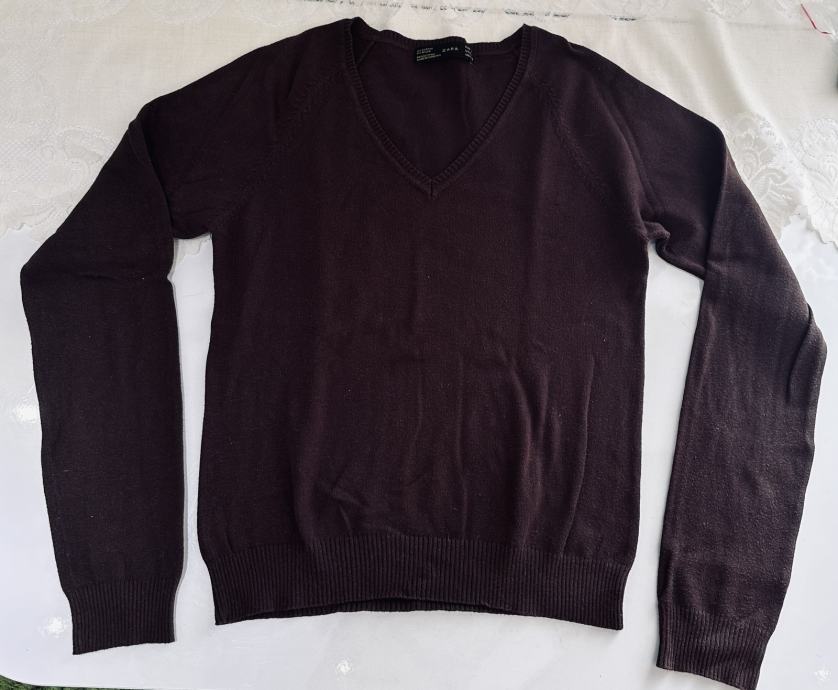 Smeđa vesta s V izrezom, dužine 55 cm, u prsima 86 cm.