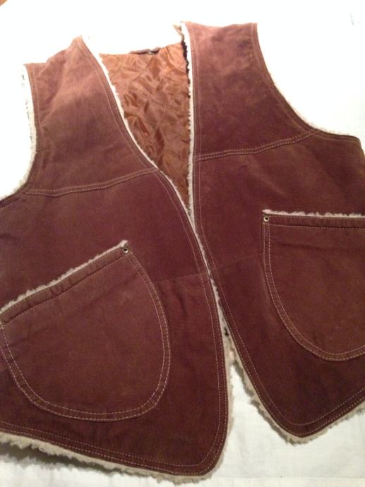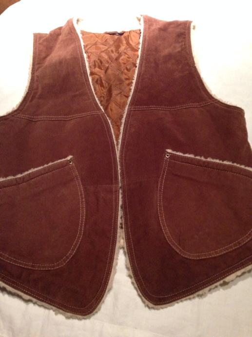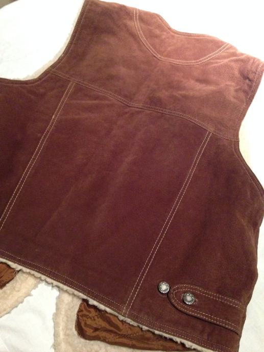 Oversize prsluk od prave brušene kože boje konjaka sa štep saten podstavom.Kao modni dodatak preko jakne...Vel.38-40-42