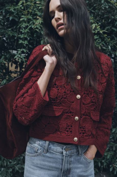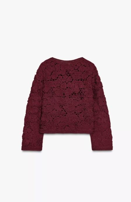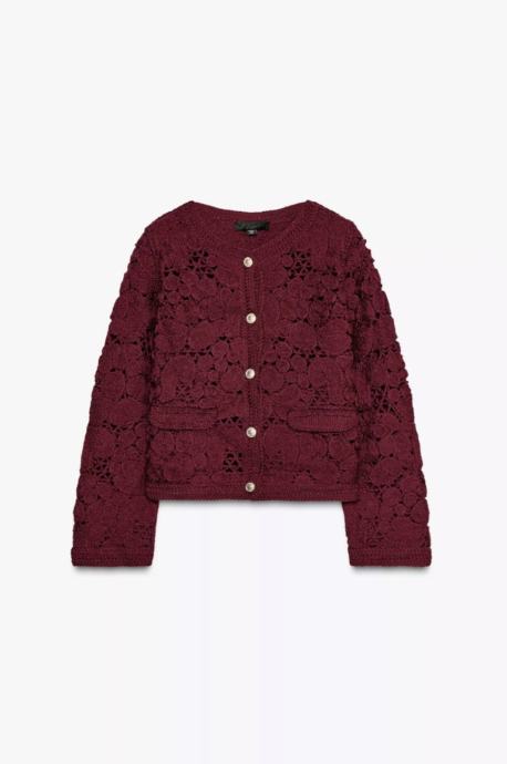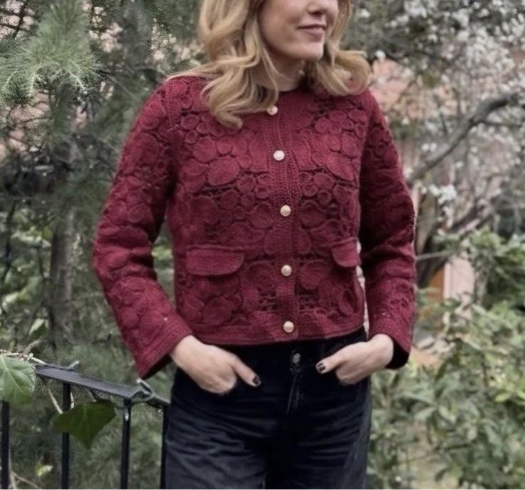 Novi Zara kardigan velicine S, bordo boje sa etiketom i cijenom. Pleteni.