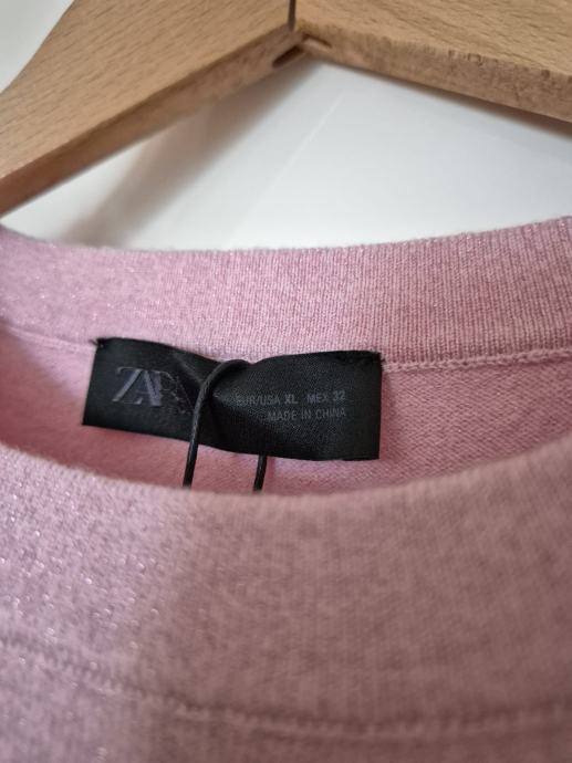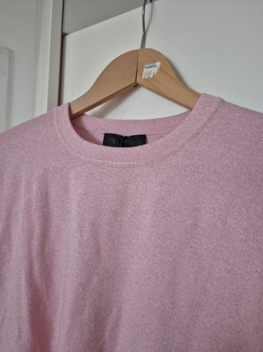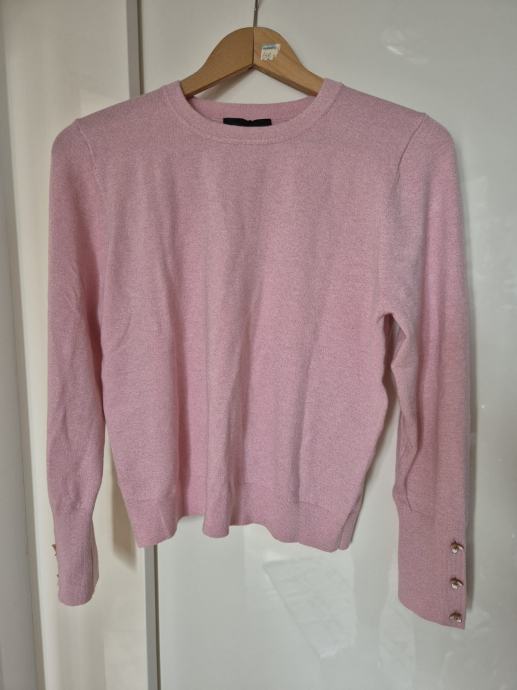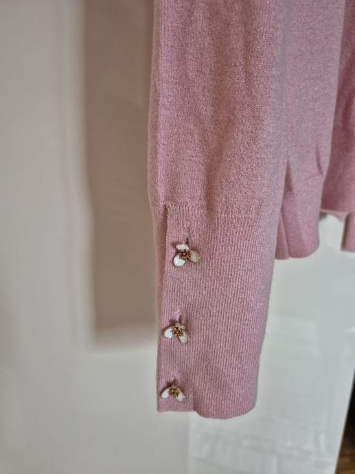 Novi Zara pulover, roze boje, sa sjajnim nitima, i gumbicima u obliku cvijeta, velicine L, sa etiketom
