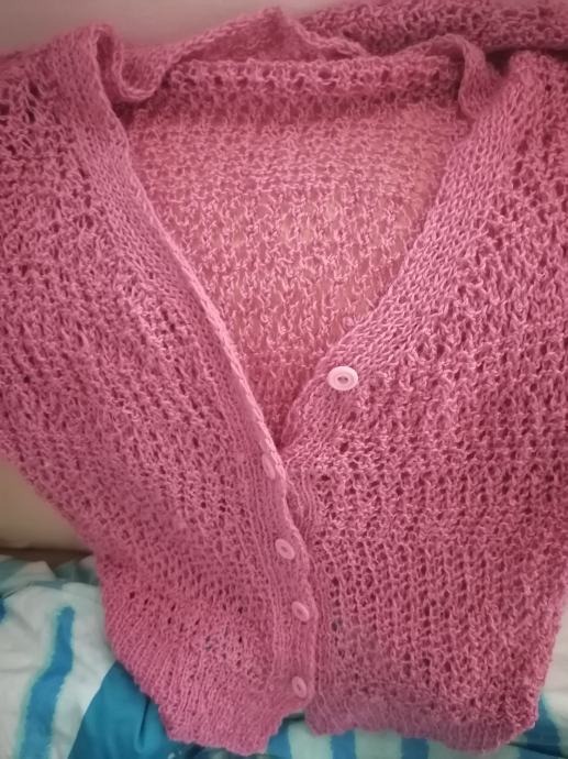 Veoma lagana, prozracna vesta na dugme, od mekanog mohera tamnoroze boje