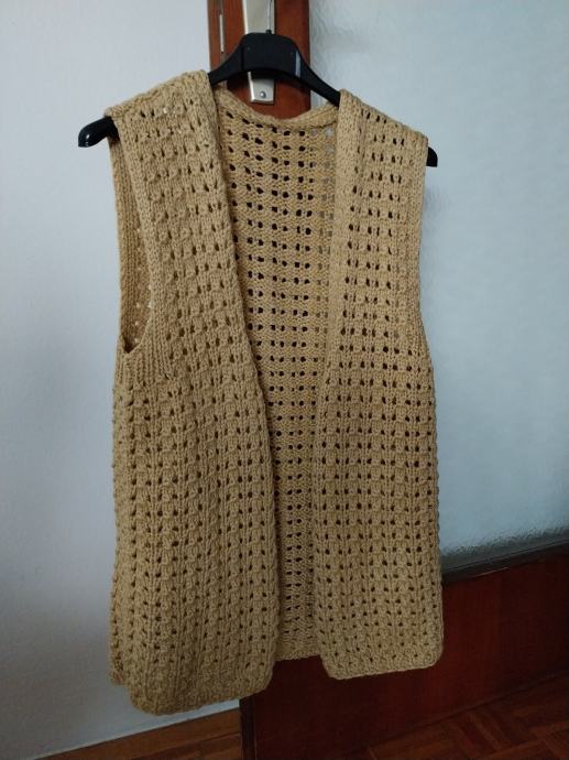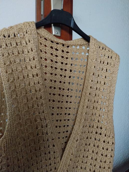 Povoljno prodajem topli ženski bež vuneni prsluk ručni rad! Rastezljiv je pa odgovara od veličine S do L.