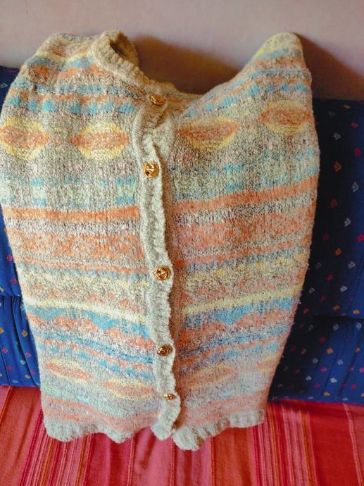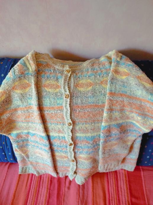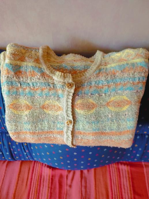 Šareni džemper na kopčanje, dugi rukavi, veličina 42