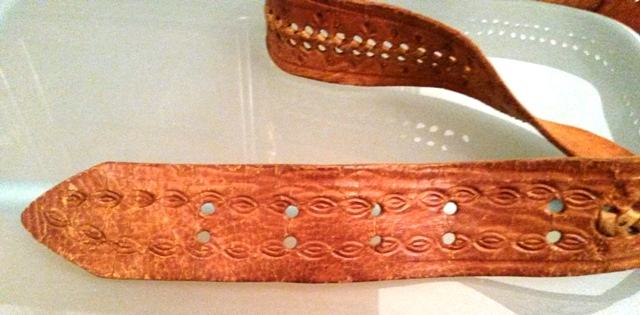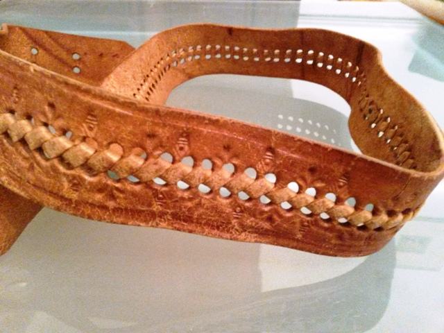 Svijetlo smeđe camel boje, ukrašen pletenim i rezbarenim motivima.