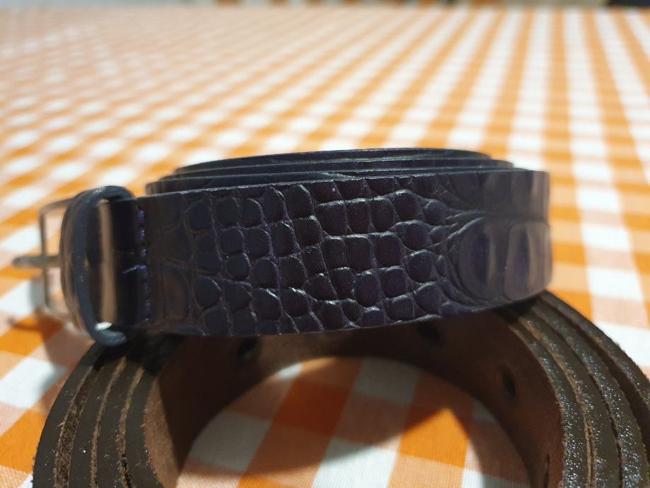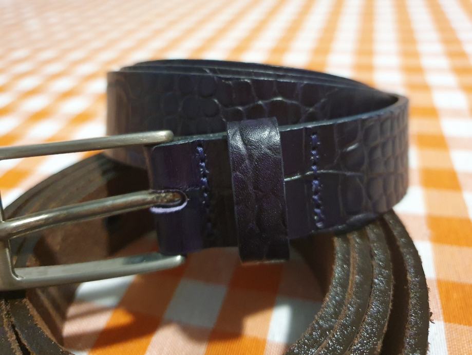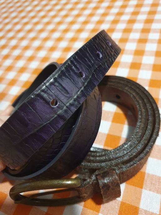 STEFANEL crno ljubičasti, kroko izgled kože, vel L, 103 cm dužina.
