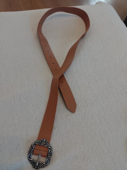 105 cm. Ako je i jednom nošen,i nema tragova. 3 cm širina.