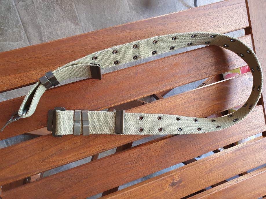 5. Maslinasti platneni, dužina mu se regulira, trenutno je namješten na 93 cm sa kopčom, debljina 4 cm. 15 kn