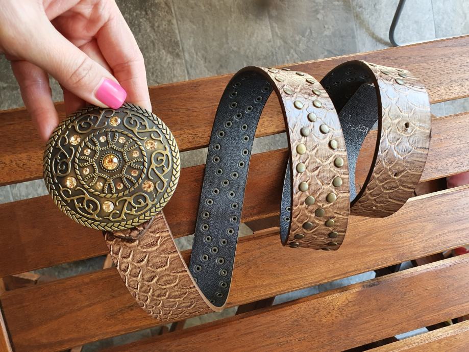 6. Smeđi umjetna koža, dužina cca 105 cm, 113 cm sa kopčom, debljina 4 cm. 20 kn