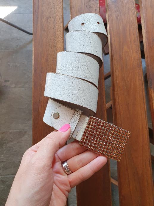2. Prljavo bijeli sa kopcom od cirkona boje konjaka, kožni, dužina cca 97 cm, 103 cm sa kopčom, debljina 3,6 cm, 25 kn