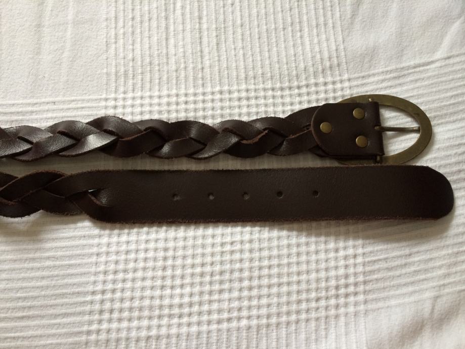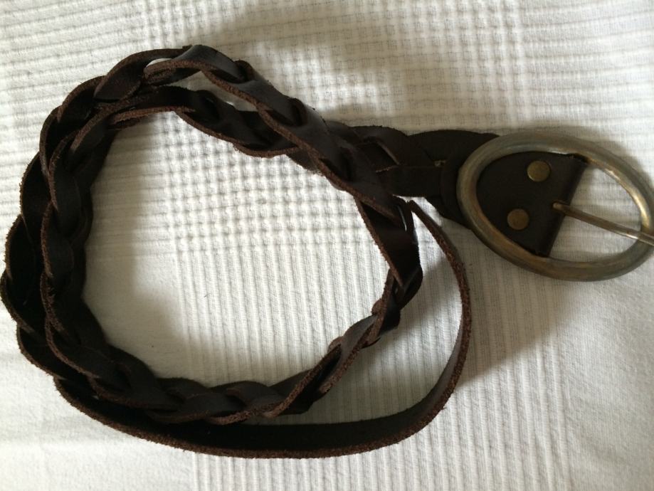 Novi smeđi remen, pleten kao pletenica sa jednostavnom ovalnom kopčom. Veličina XL/105 cm (meni, nažalost, prevelik)