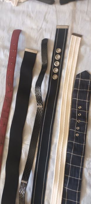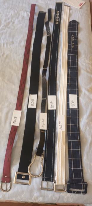 Prodajem set ženskih remena u raznim bojama i stilovima. Radi se o šarenom asortimanu remena različitih materijala i dizajna, dužina u rasponu od 100 do 110 cm.