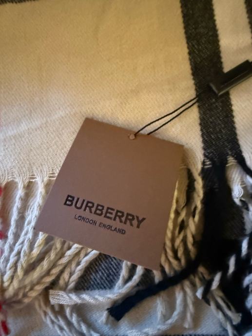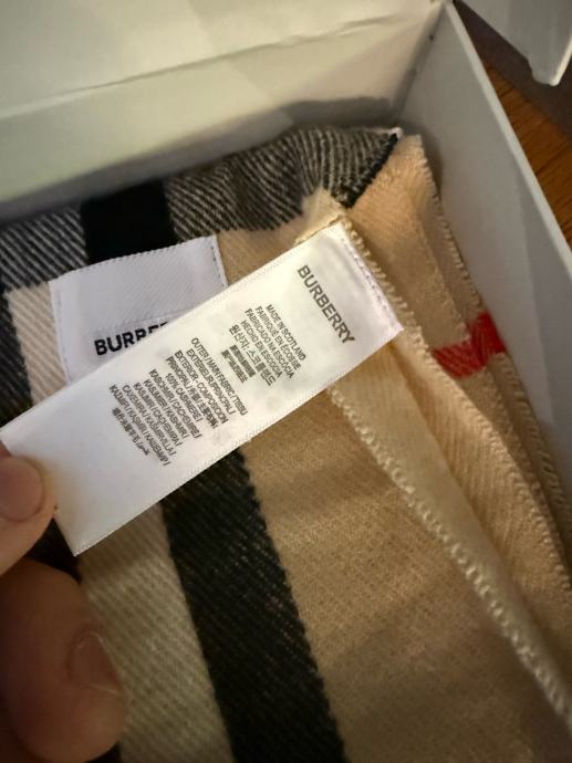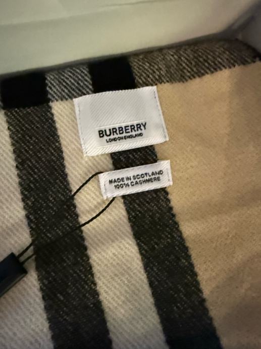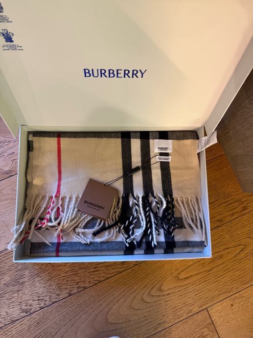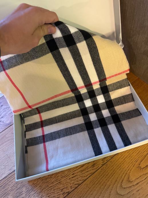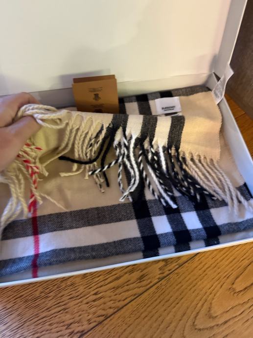Prodajem potpuno novi Burberry šal u bež boji s originalnom etiketom. Elegantan šal izrađen od 100% kašmira, proizveden u Škotskoj s prepoznatljivim Burberry uzorkom. Dolazi u originalnoj Burberry kutiji, savršen za poklon ili osobnu upotrebu.