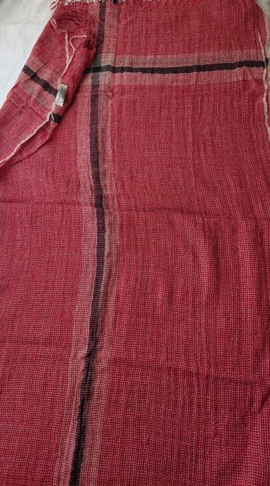 2. Crveno-crni, Zara šal s finim kariranim uzorkom i istaknutim okomitim prugama u tamnijim i svjetlijim tonovima. Izrađen je od lagane - vunene tkanine, koja podsjeća na indijske ručno tkane materijale. Lagan i prozračan. Prekrasan šal za proljetne i ljetne kombinacije. Bez etikete, nije nošen