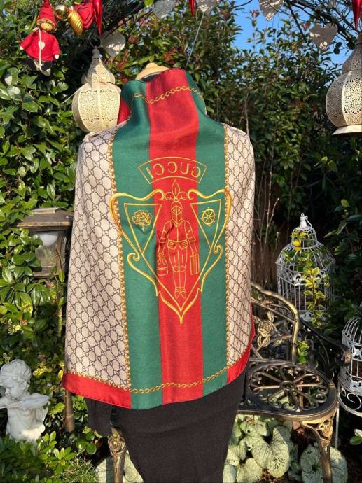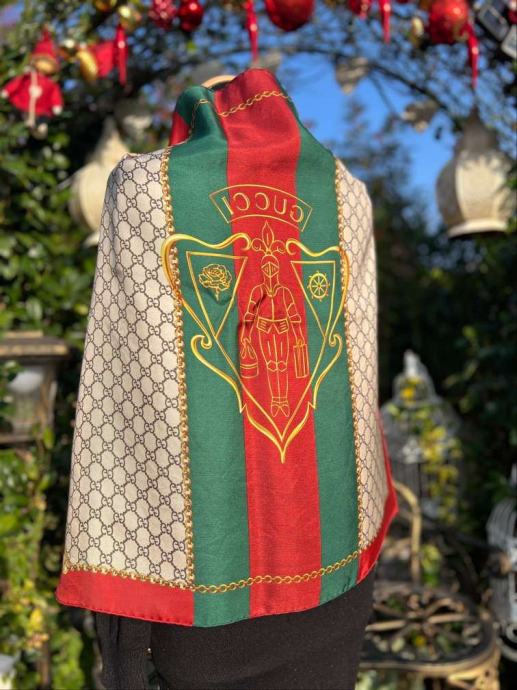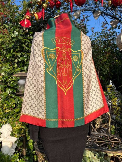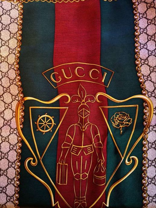 Gucci Original svileni šal s GG printom i zlatnim viteškim grbom