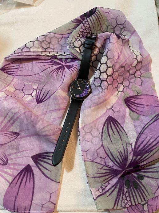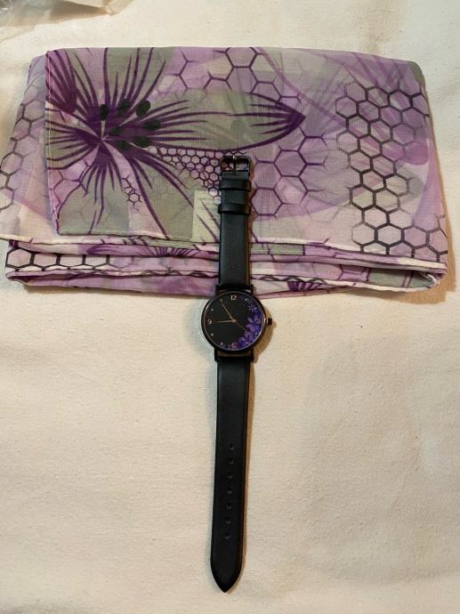 Prodajem novi set koji se sastoji od šala i sata sa kožnim remenom.