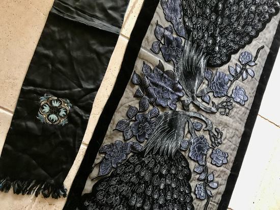 -Velika crna pašmina s likom pauna je tanki plis izvezen sa srebrnim koncem..10 eu