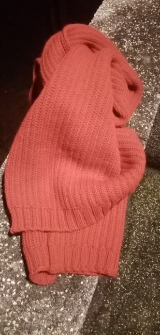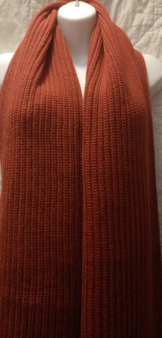 Vuneni bogati šal terracota boje. Dužina 180cm, širina 36cm