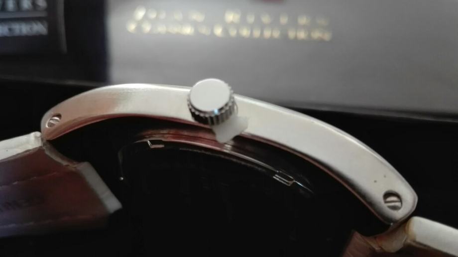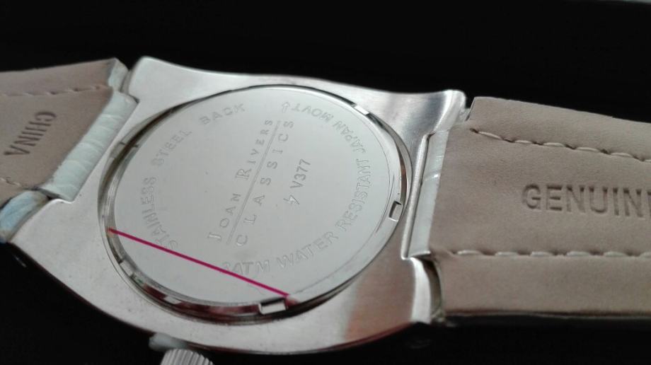 Dizajnerski sat iz kolekcije preminule američke spisateljice i glumice Joan Rivers. Retail cijena u USA / CAD je bila u protuvrijednosti cca 100€. Novo, majka dobila na poklon prije 8 godina i odlučila prodati jer stoji nekorišten.