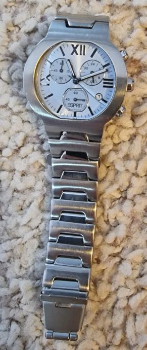 Esprit originalni ručni srebrni sat. Dobiven na poklon. Ne nošen. Prikaz datuma, sekunda, štoperica....