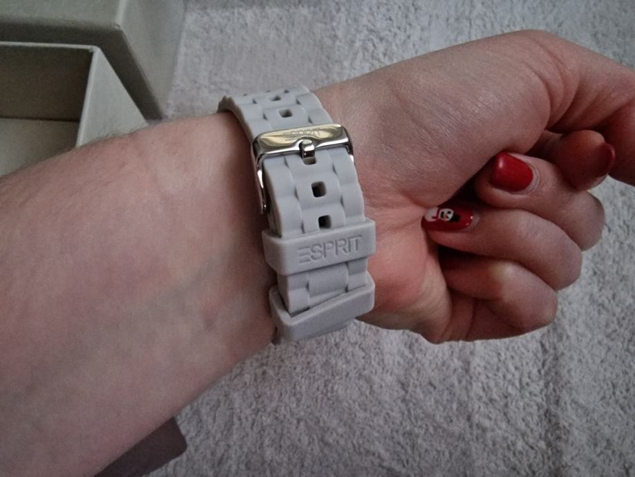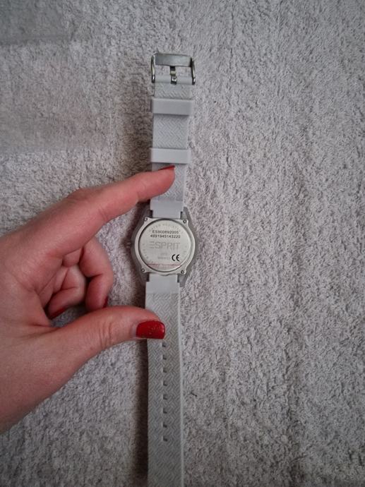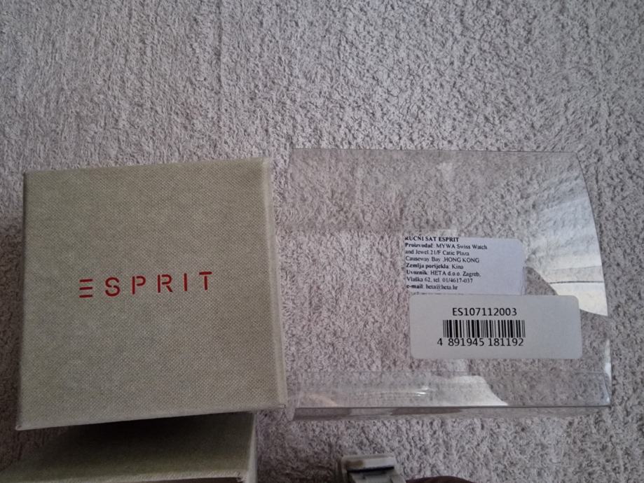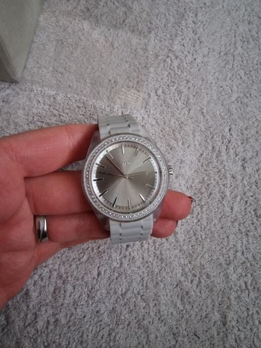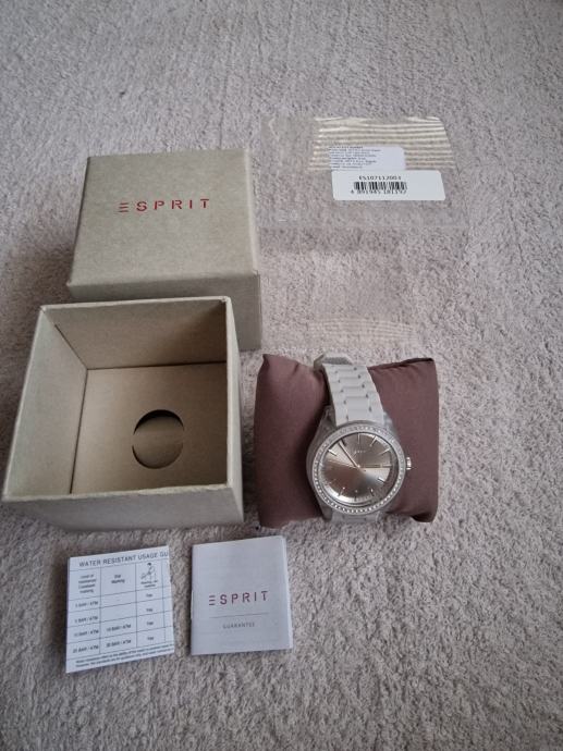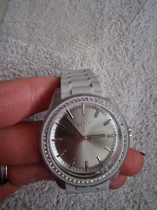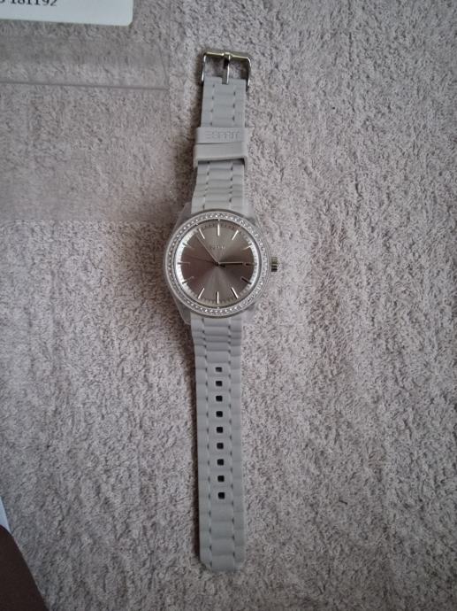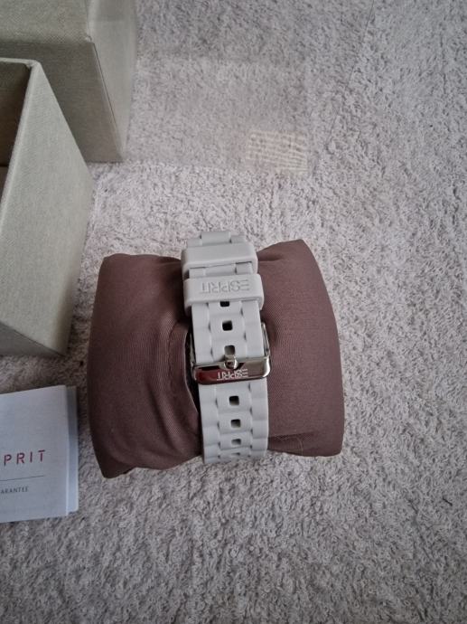 Potpuno novi nikad nošeni Esprit sat za žene sa cirkonima, niježno sive boje, oznake Esprit vidljive su na kopčama sata te na kućištu sata.