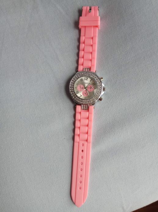 Divan efektni sat sa silikonskim remenom i cirkonima na kućištu. Nekorišten, potrebna baterija.